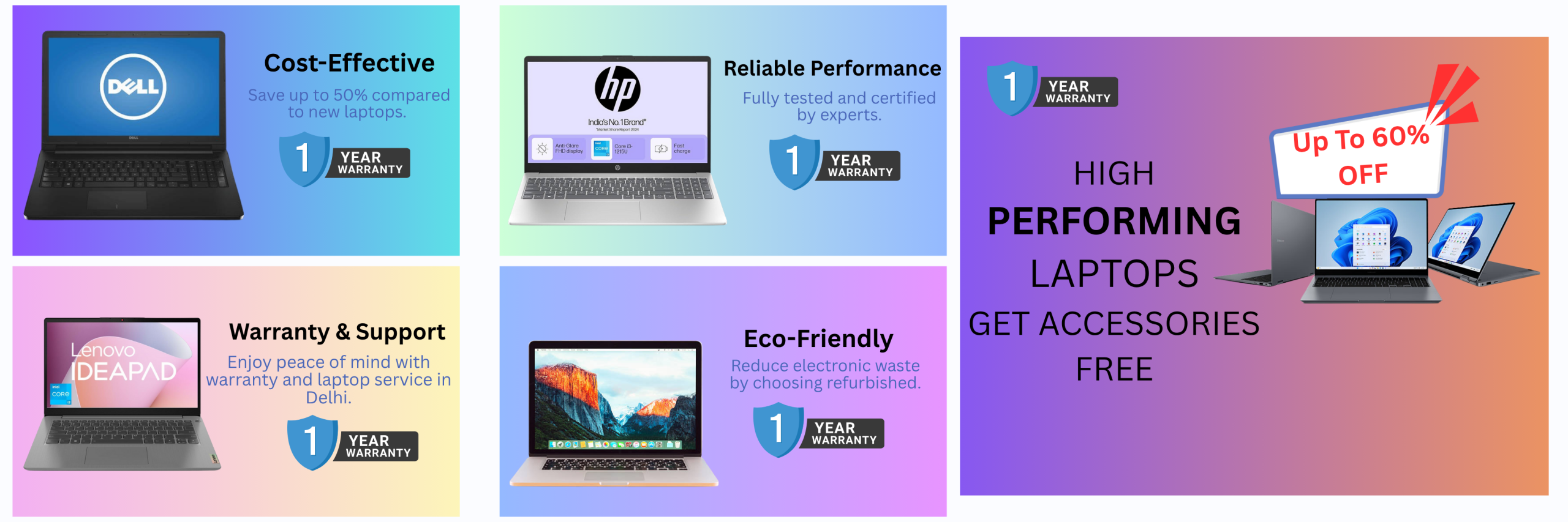 1. Cost-Effective: Save up to 50% compared to new laptops.